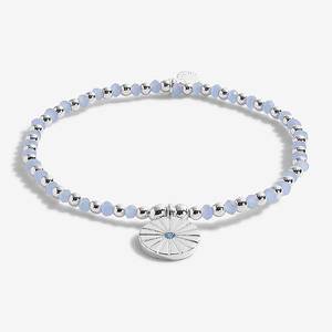 Joma Jewellery armbånd HAPPY BIRTHDAY - GRATULERER MED DAGEN i sølv med lysblå krystallperler i armbåndet og anhenget med lysblå zirkonia krystall, er både vakkert og iøynefallende med forfriskende lysblåfarge.