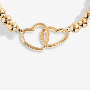 A Little Friendship armbåndet har karakteristiske runde gullkuler som sikrer en komfortabel passform på ethvert håndledd, er elastisk, og kronet med et spesielt gullbelagt dobbelt sammenflettede hjerte anheng, for å vise ditt evige vennskap med din bestevenninne.