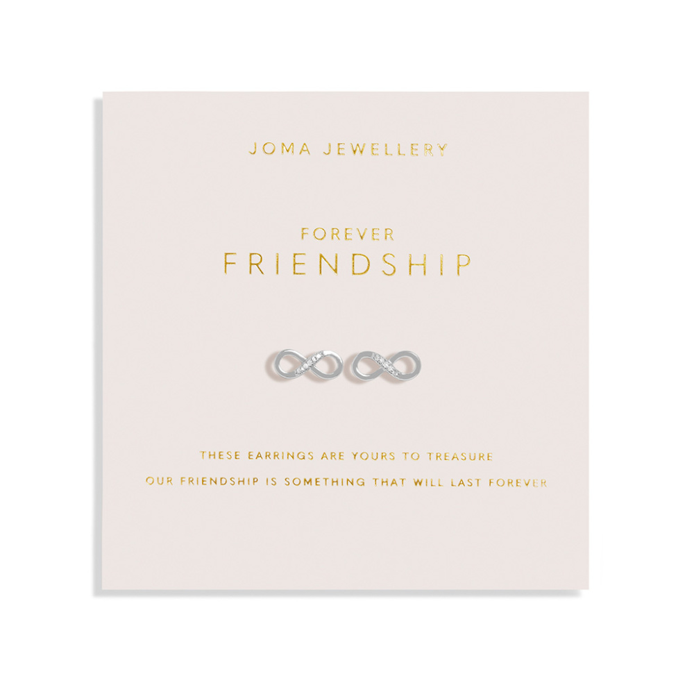 Vis at vennskapet deres er for alltid med FOREVER FRIENDSHIP - VENNSKAP FOR ALLTID øredobber fra Joma Jewellery. Disse elegante sølvbelagte evighetsøredobbene symboliserer et vennskap som aldri falmer. Eternity gaver er meget populære gaver.