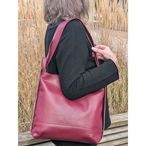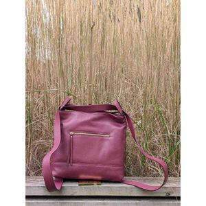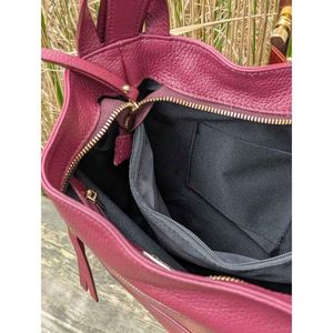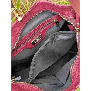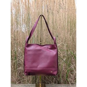 Vesken er laget i mykt, ekte skinn i en klassisk og trendy burgunder farge som gir et moderne og tidløst uttrykk. Innvendig finner du tre romslige hovedrom, hvorav midten har glidelås for ekstra sikkerhet.