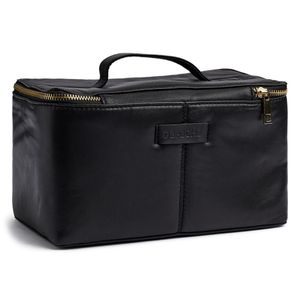 Med glidelåslukking på toppen og et praktisk bærehåndtak er toalettmappen enkel å ta med seg, uansett anledning. Innvendig finner du flere rom som gir deg smart organisering av alt fra sminke og hudpleieprodukter til børster og tilbehør.