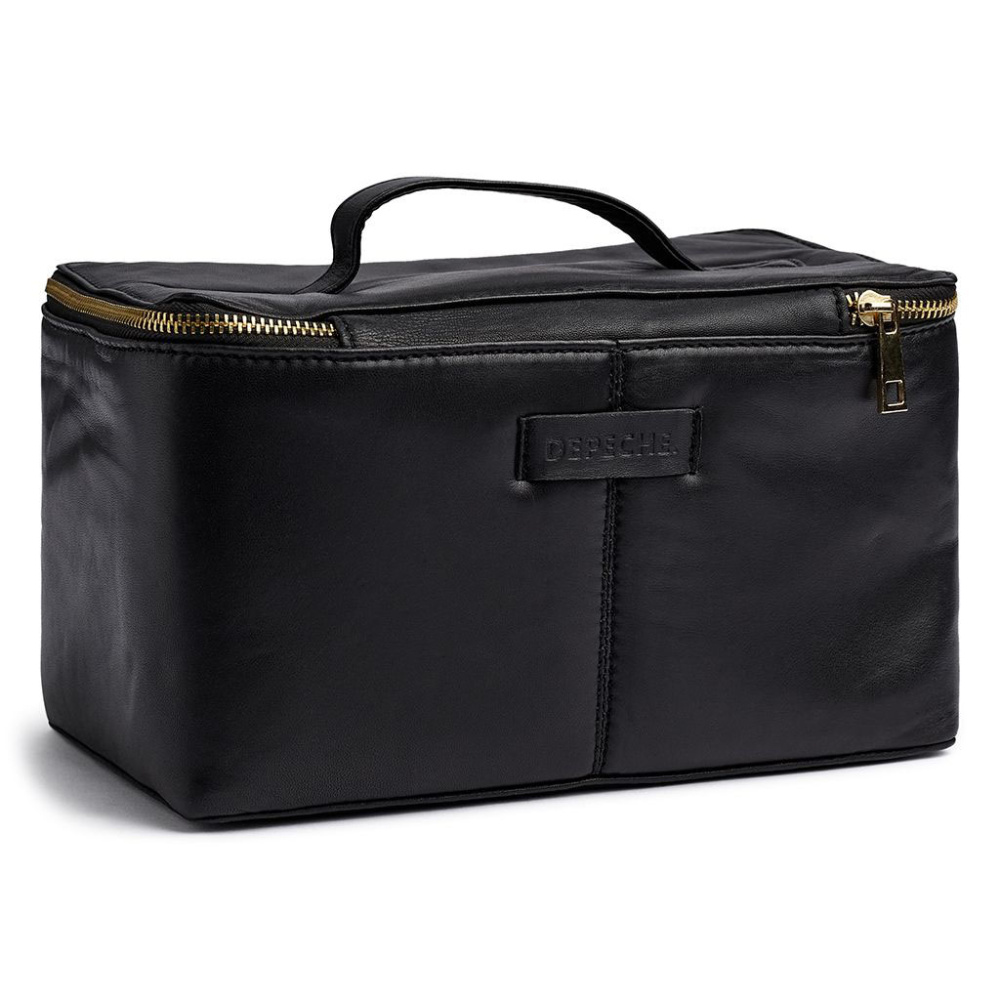 Toalettmappe POWER FIELD i sort med gullfarget glidelås fra Depeche er den perfekte kombinasjonen av funksjonalitet og eksklusivt design. Beauty boxen til dame er laget i 100 % mykt saueskinn og har et stilrent, minimalistisk uttrykk som gjør den til en tidløs favoritt – både til hverdags og på reise.