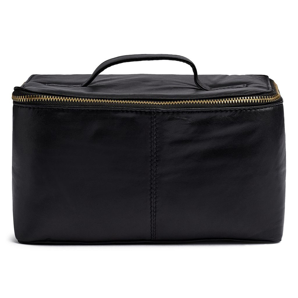 Tidløs toalettmappe i svart skinn – perfekt for sminke, hudpleie og reise.