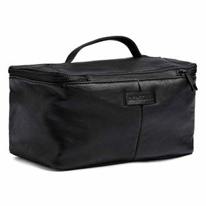 Med glidelåslukking på toppen og et praktisk bærehåndtak er toalettmappen enkel å ta med seg, uansett anledning. Innvendig finner du flere rom som gir deg smart organisering av alt fra sminke og hudpleieprodukter til børster og tilbehør.