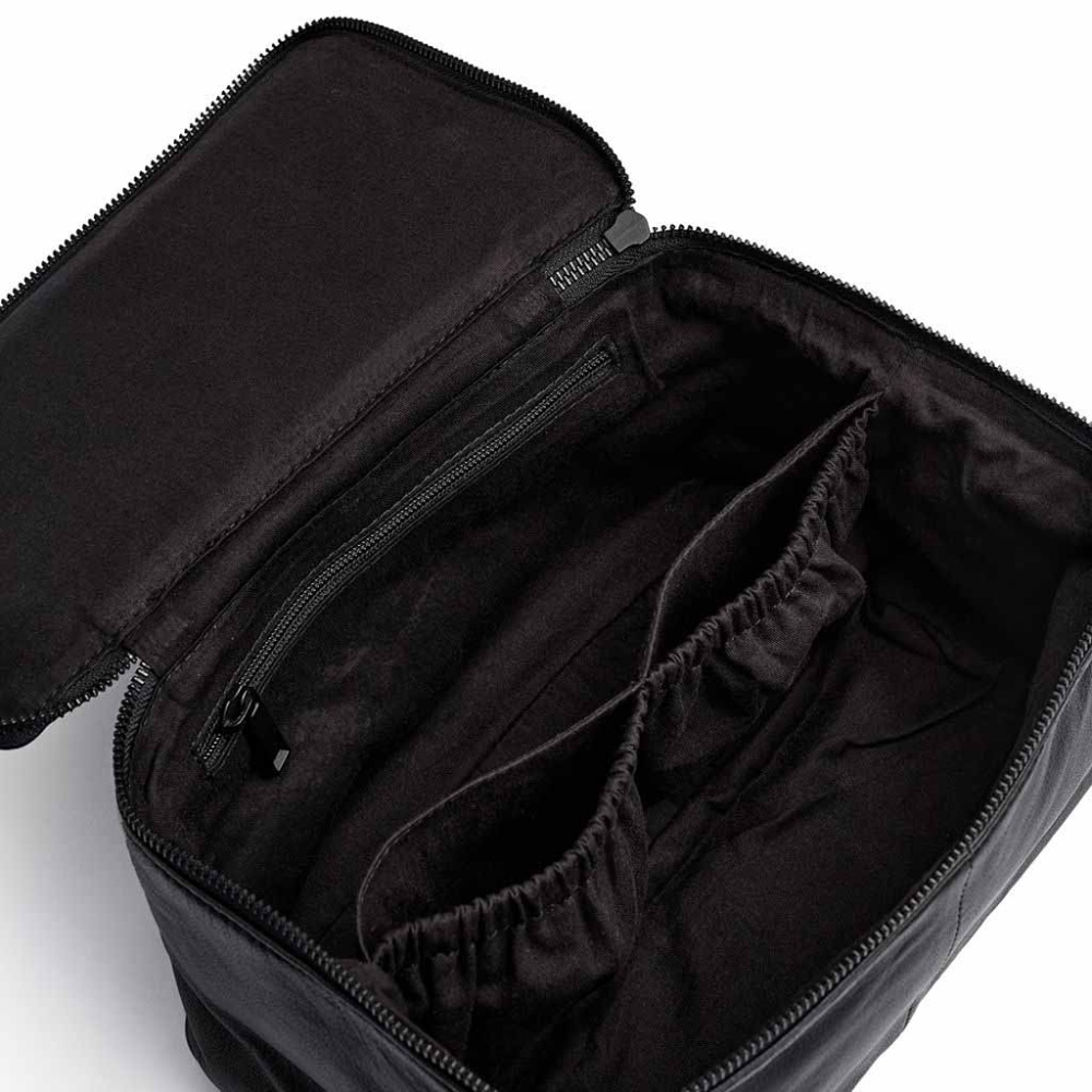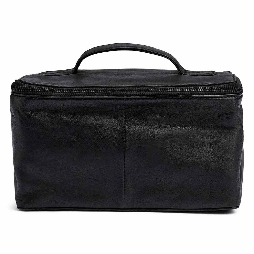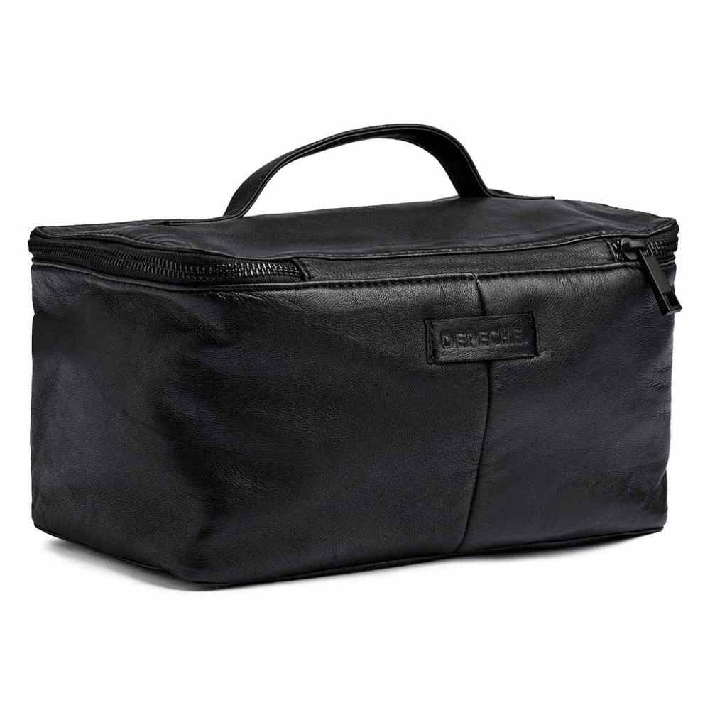 Tidløs toalettmappe i svart skinn – perfekt for sminke, hudpleie og reise.